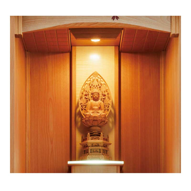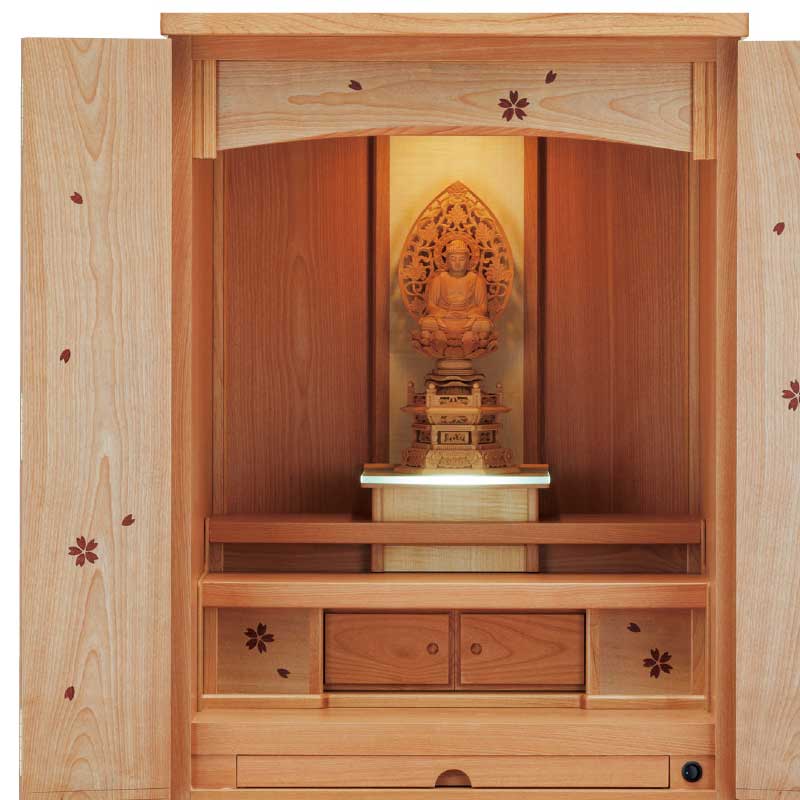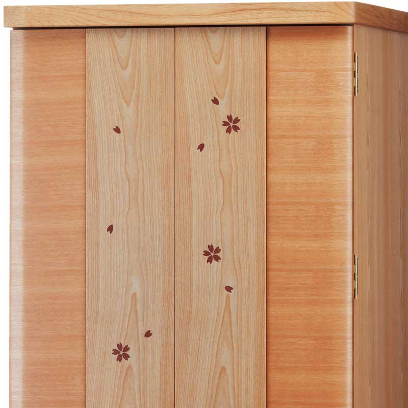 さくら材に特殊加工した桜が美しく映えるお洒落なお仏壇-滝桜DX(家具調仏壇)。