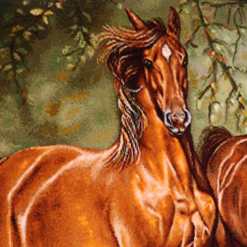 ウールとシルクの絶妙な使い方で、馬の毛並みのなめらかさと艶が良く表れていると思います。