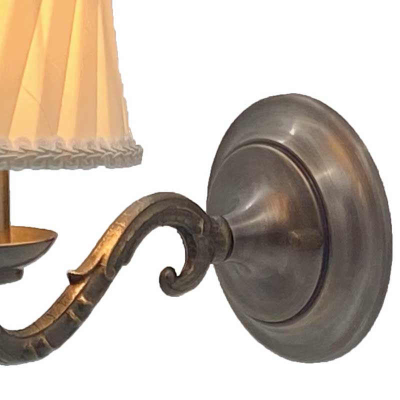 アンティーク調1灯用キャッチ式布シェードのとてもクラシカルな雰囲気を醸し出すウォールランプです。各パーツを海外にて生産し国内にて、組み立て配線しています。