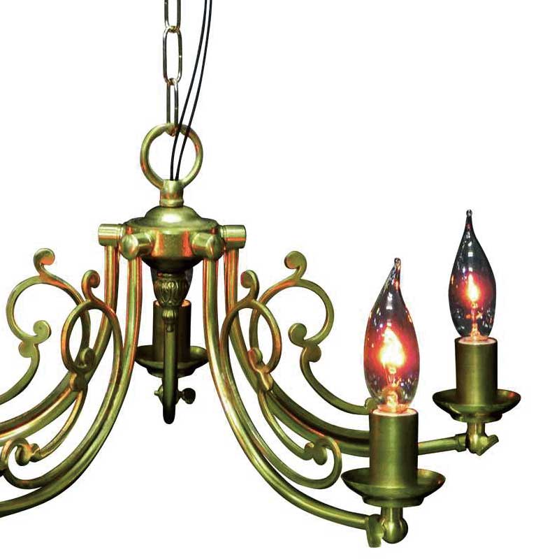 ゴールド色のクラシック調フレームの5灯シャンデリア照明。