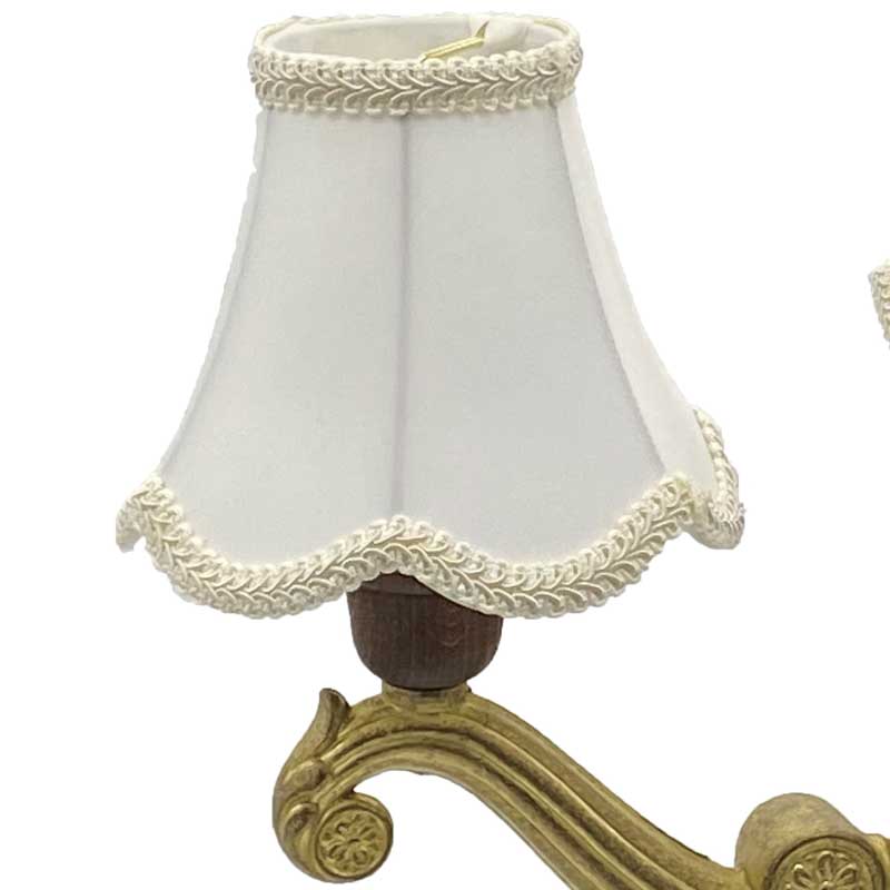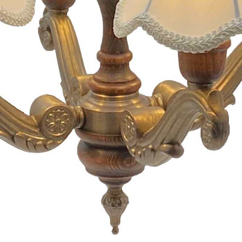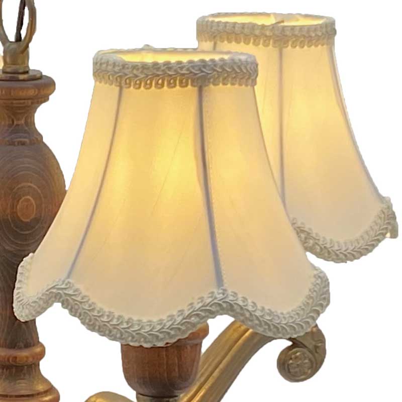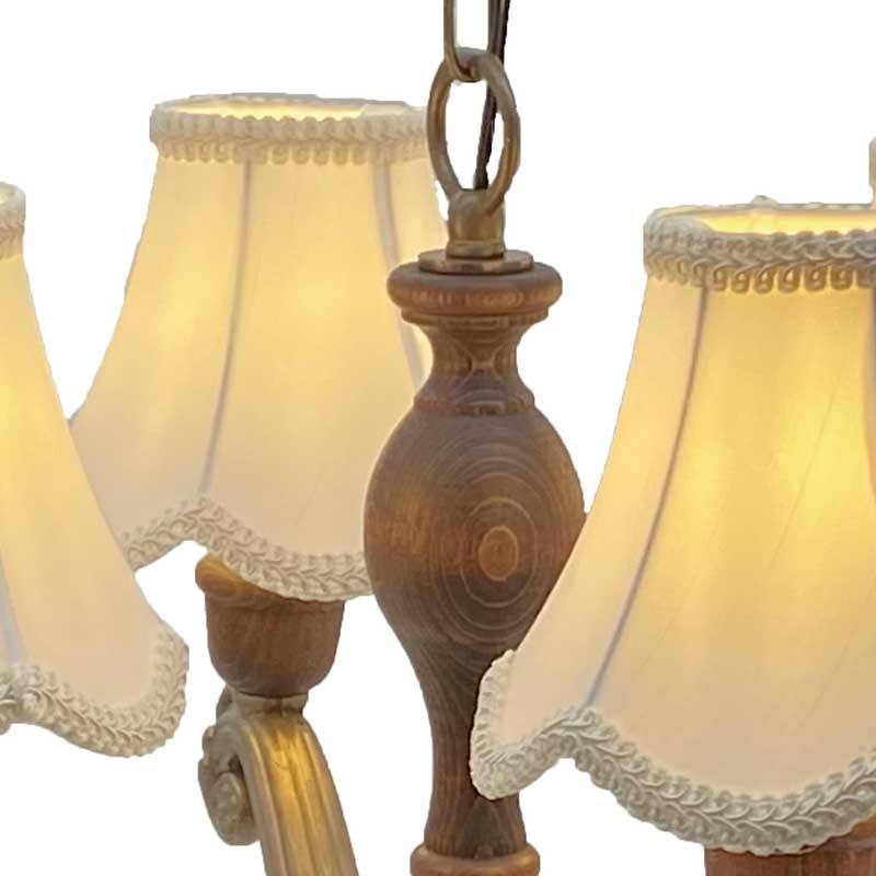 豪華なデザインの布シェードの4灯シャンデリア照明。各パーツを海外にて生産し国内にて、組み立て配線しています。