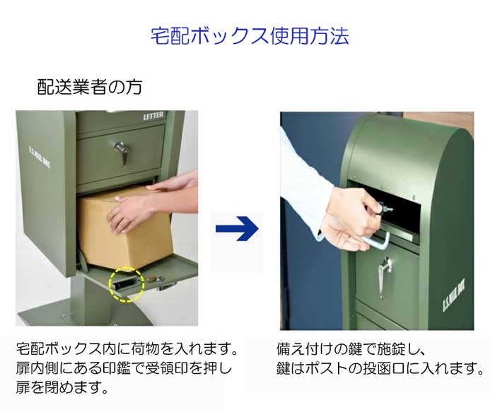 (北海道、沖縄、離島等一部地域を除く) アメリカの公共用ポストをモチーフにした宅配ボックスポストです。