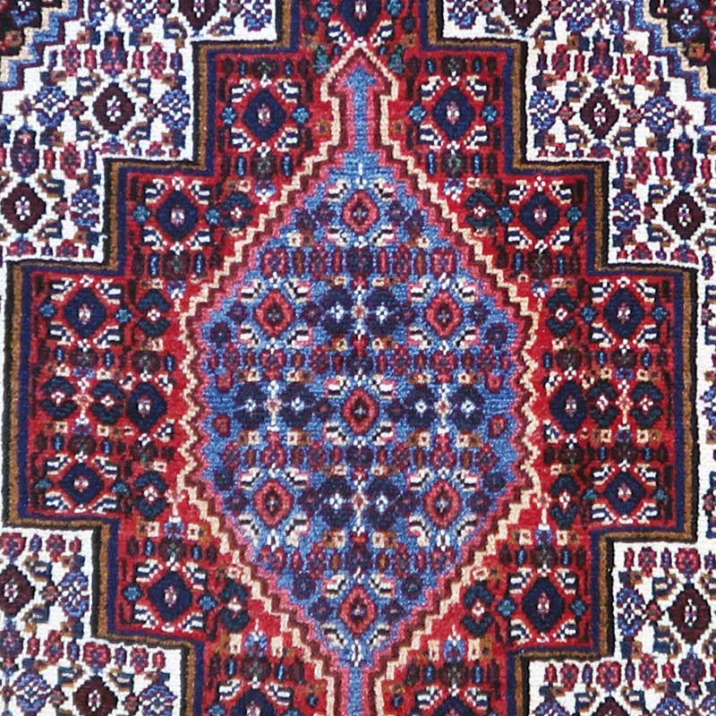 セネ産の絨毯は、中央に大きなダイヤモンドまたはひし形のデザインを持つのが典型的で、主に紺青や赤が使われ、それはクルド人が作る絨毯の最大の特徴です。