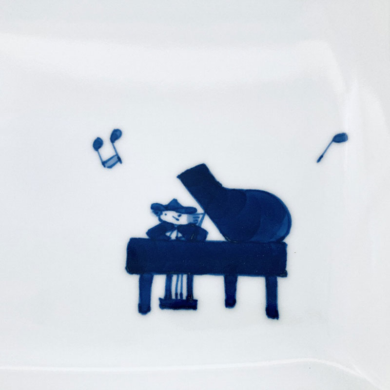 音符とピアノ スクエアプレートM 青花 有田焼