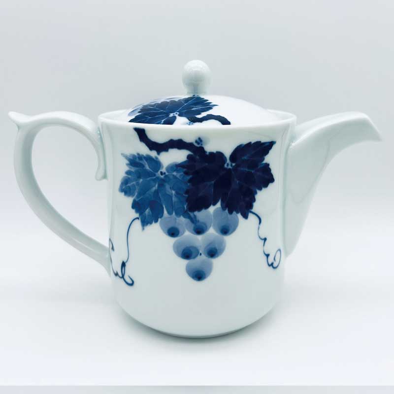 ぶどうこだわりのポット 有田焼 青花