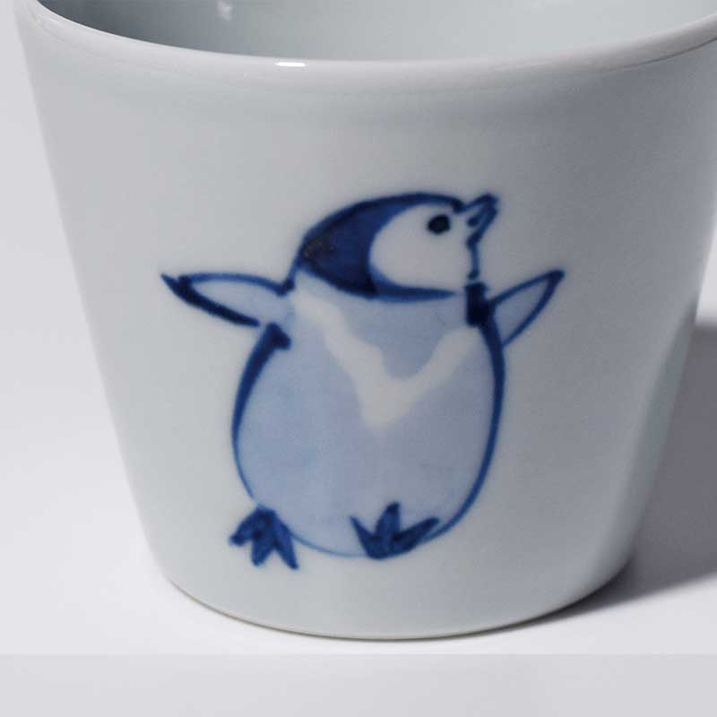 この猪口にはコウテイペンギンの子供ペンギンを描いております。