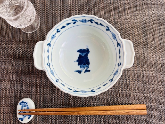 カール紅毛人新耳付スープ碗 青花 有田焼
