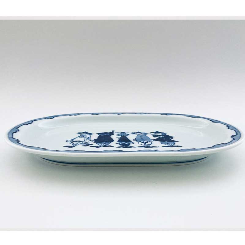 渕波五人異人小判プレート 青花 有田焼