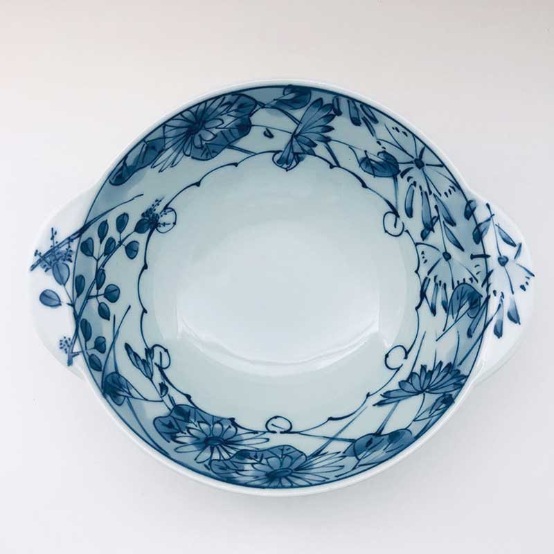 草花耳付丼(大) 青花 有田焼