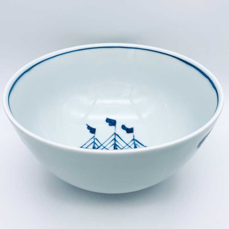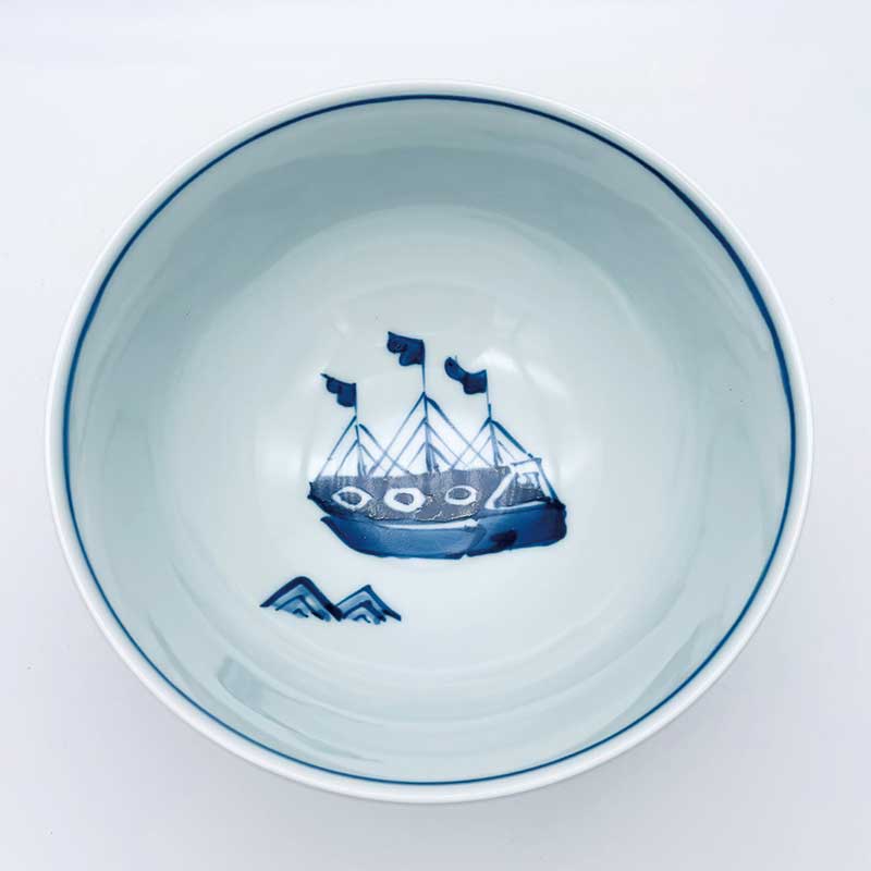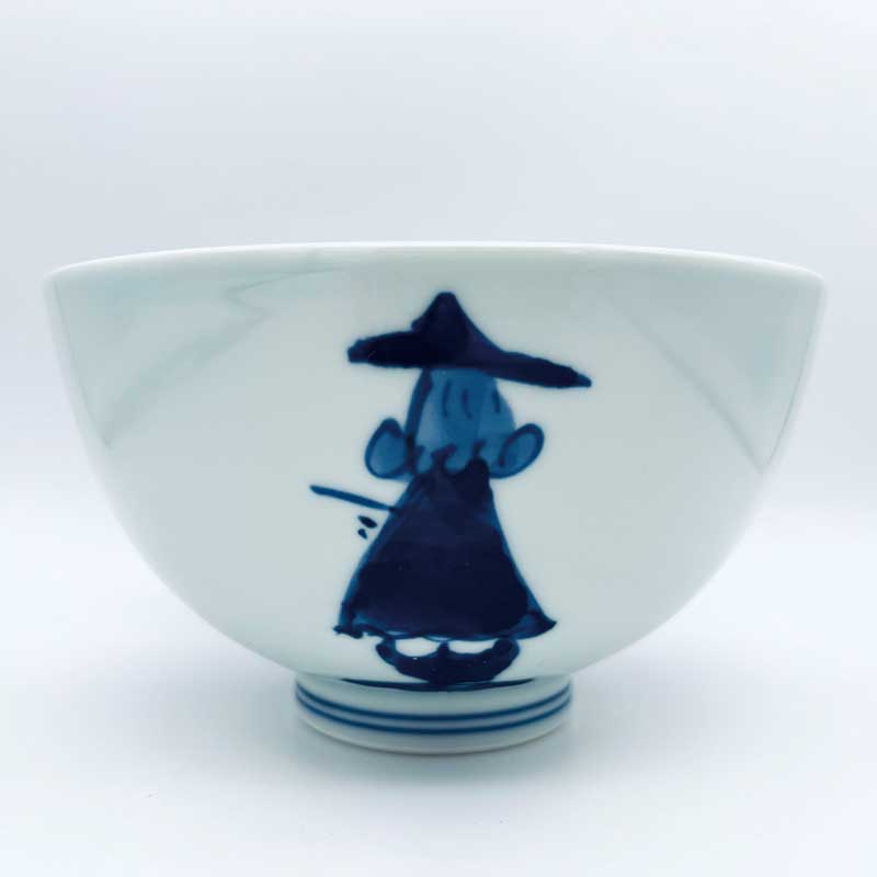 三人異人5寸深丼 青花 有田焼