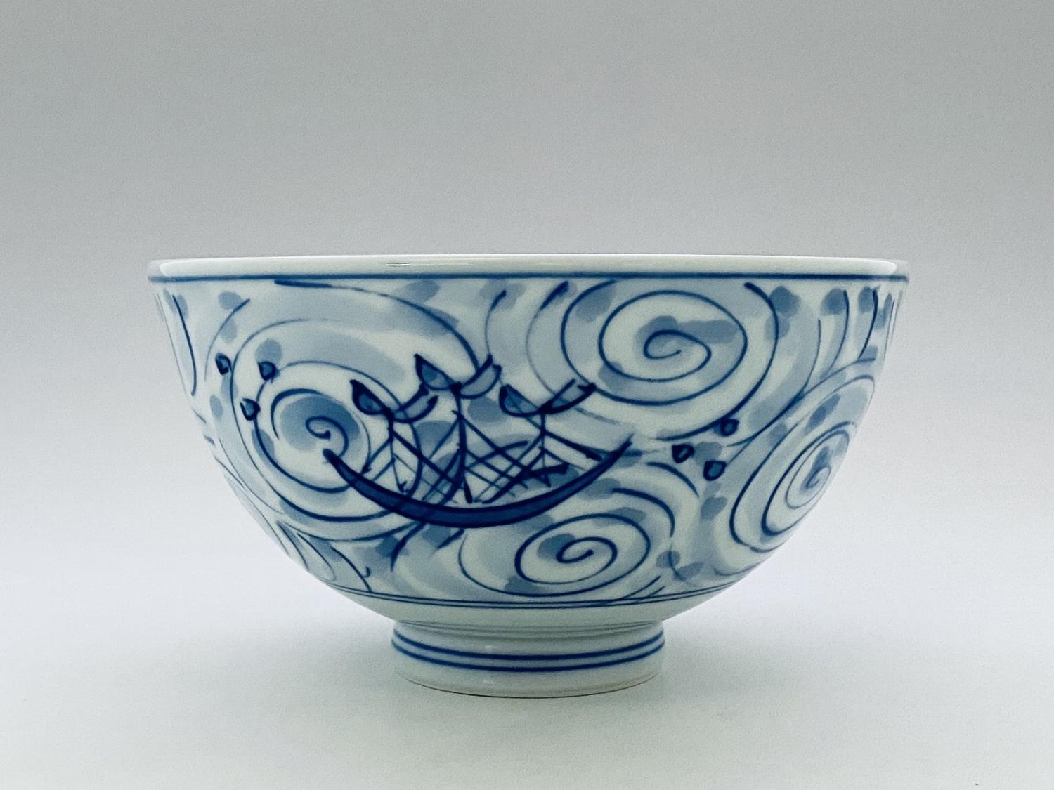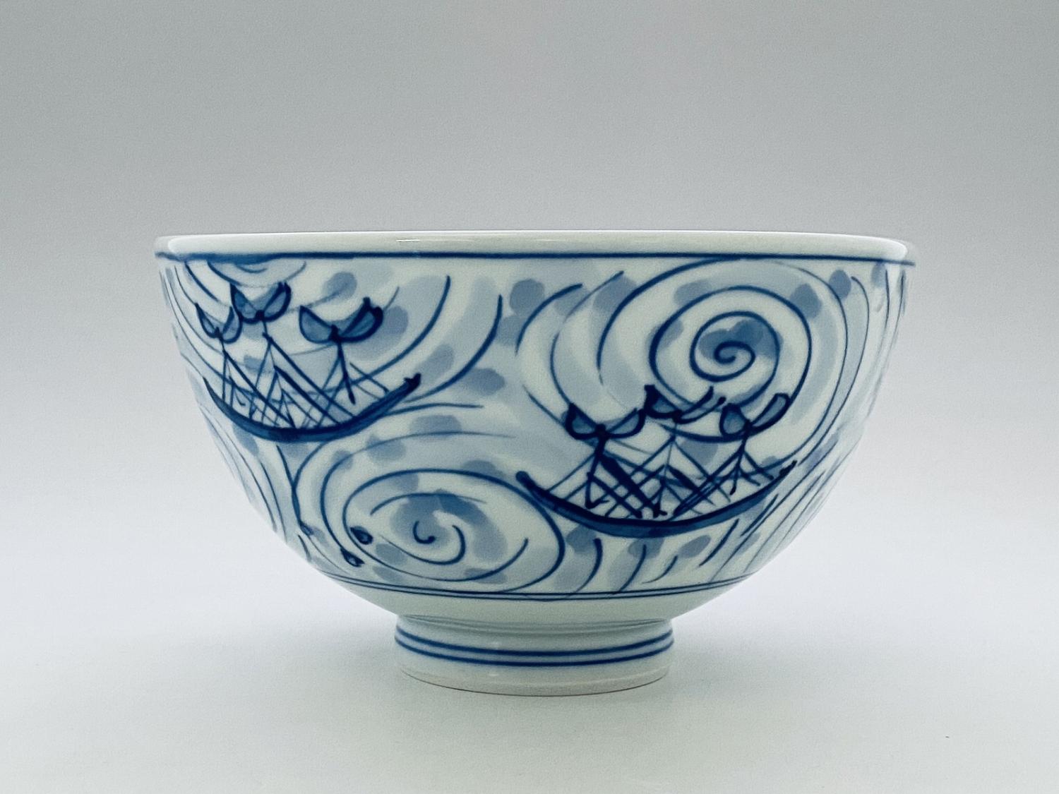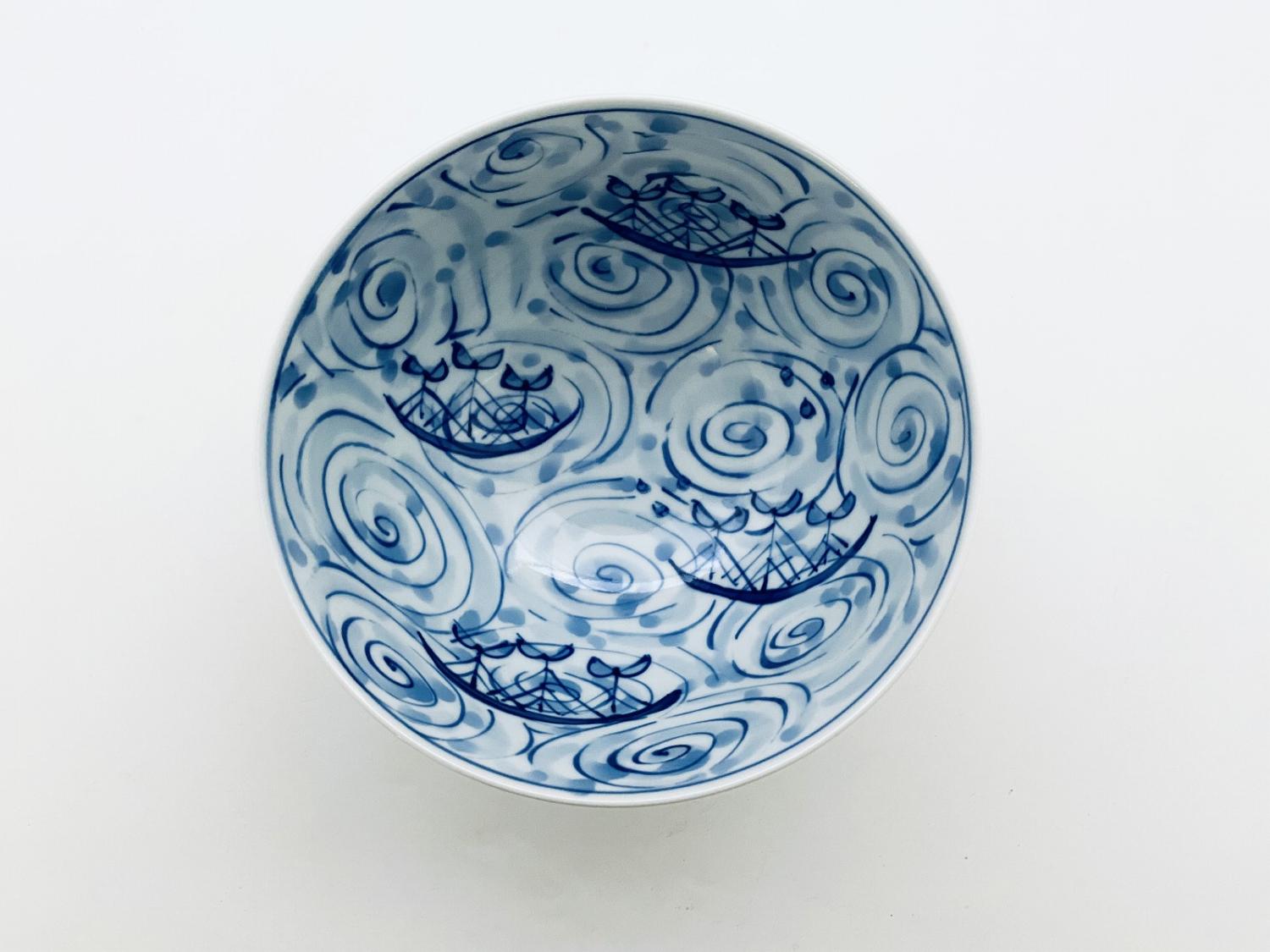 渦帆船5寸深丼 青花 有田焼
