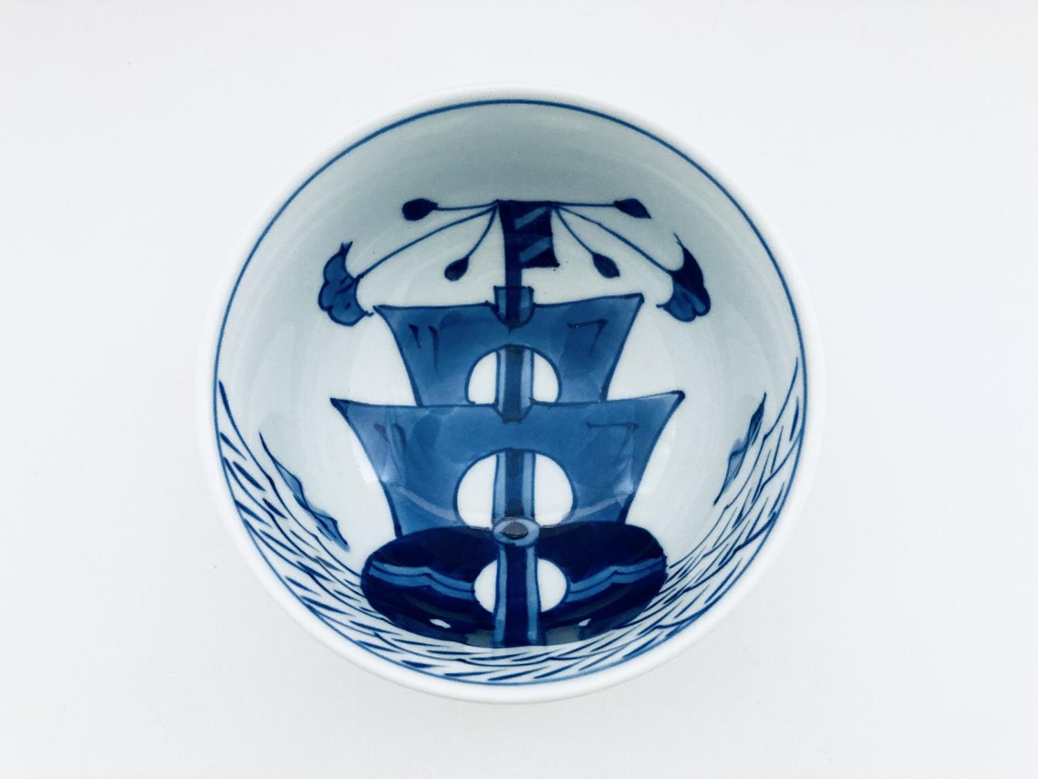 内船外人形玉渕4.5寸丼 青花 有田焼