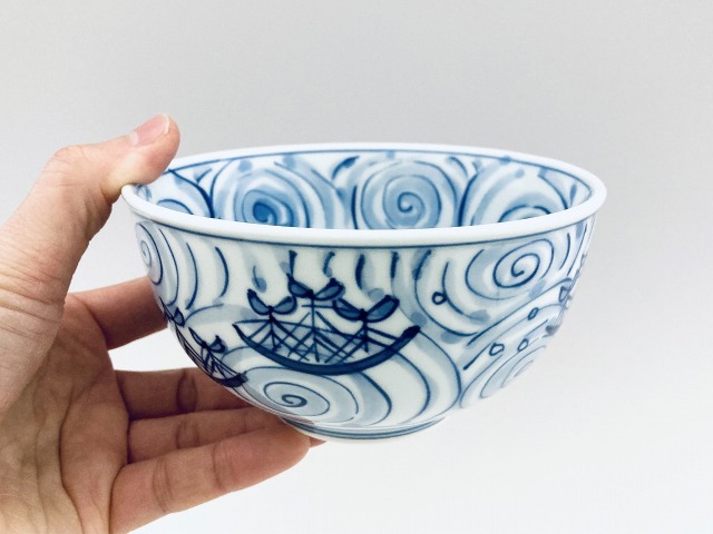 渦帆船玉渕4.5寸丼 青花 有田焼
