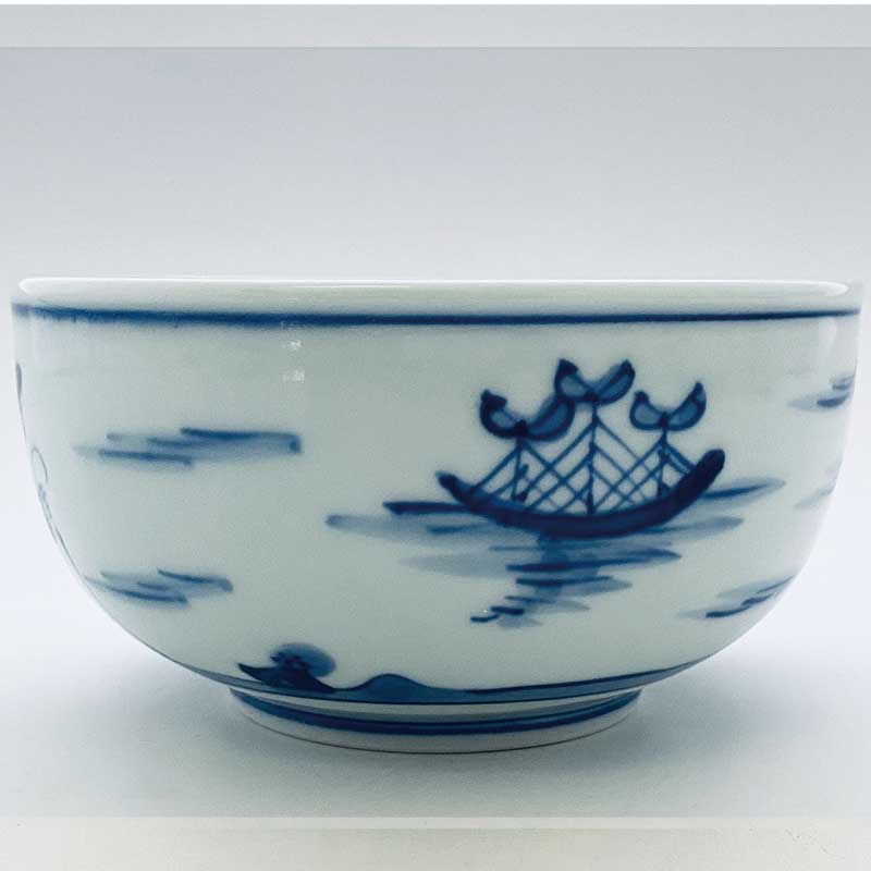 二人異人玉渕4寸丼 青花 有田焼