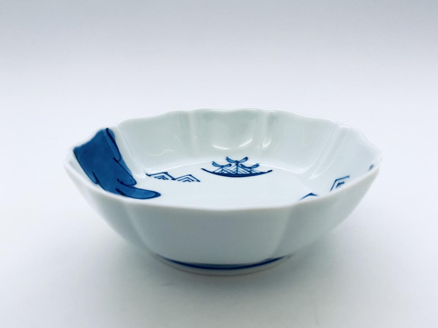 クラシックシリーズ 雲間取帆船八方割小鉢 青花 有田焼