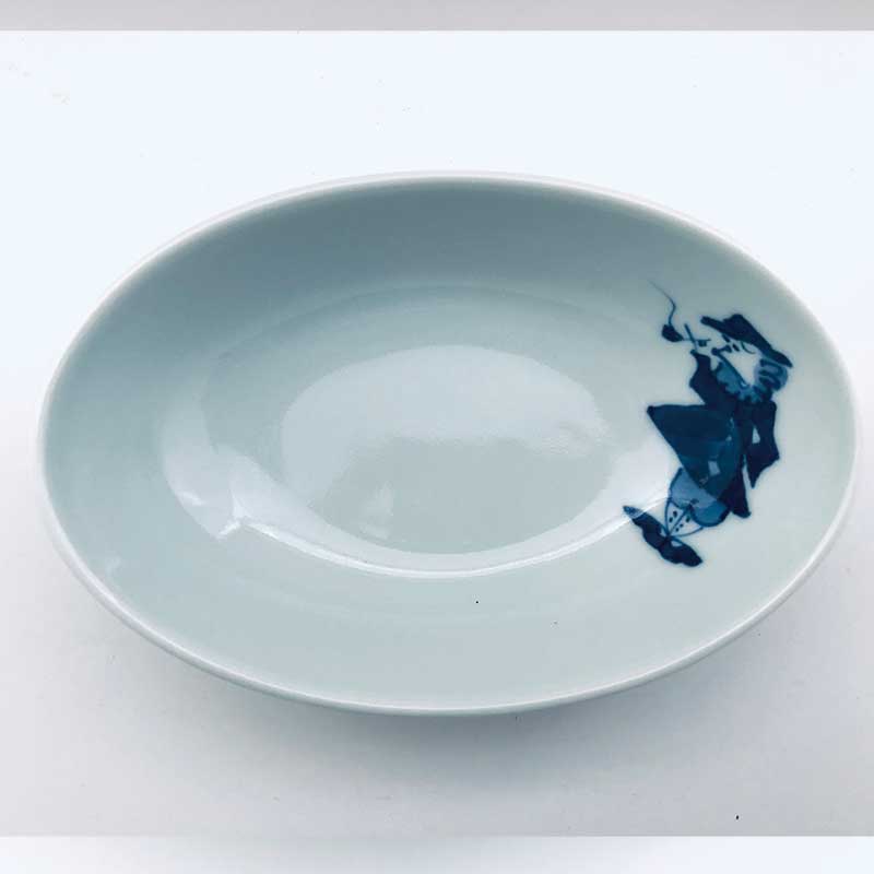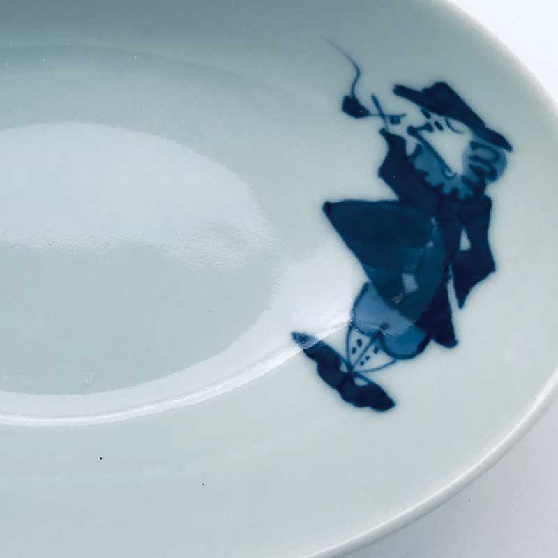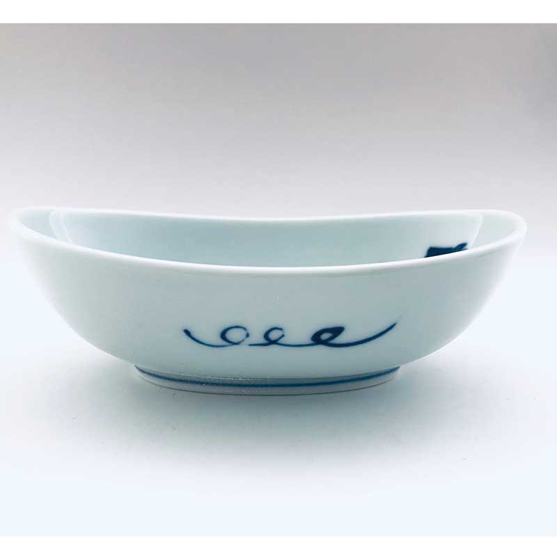 パイプ異人楕円小鉢 青花 有田焼