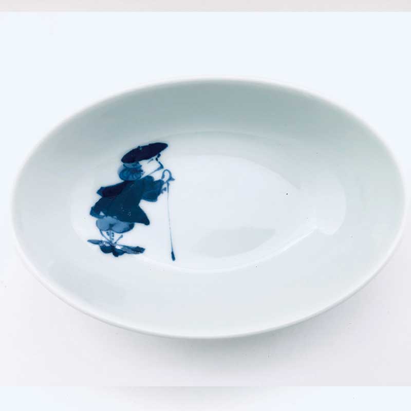 ステッキ異人楕円小鉢 青花 有田焼