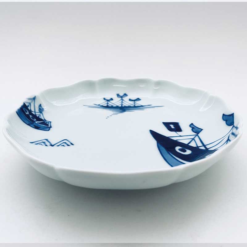 クラシックシリーズ オランダ船八方割5寸皿 青花 有田焼