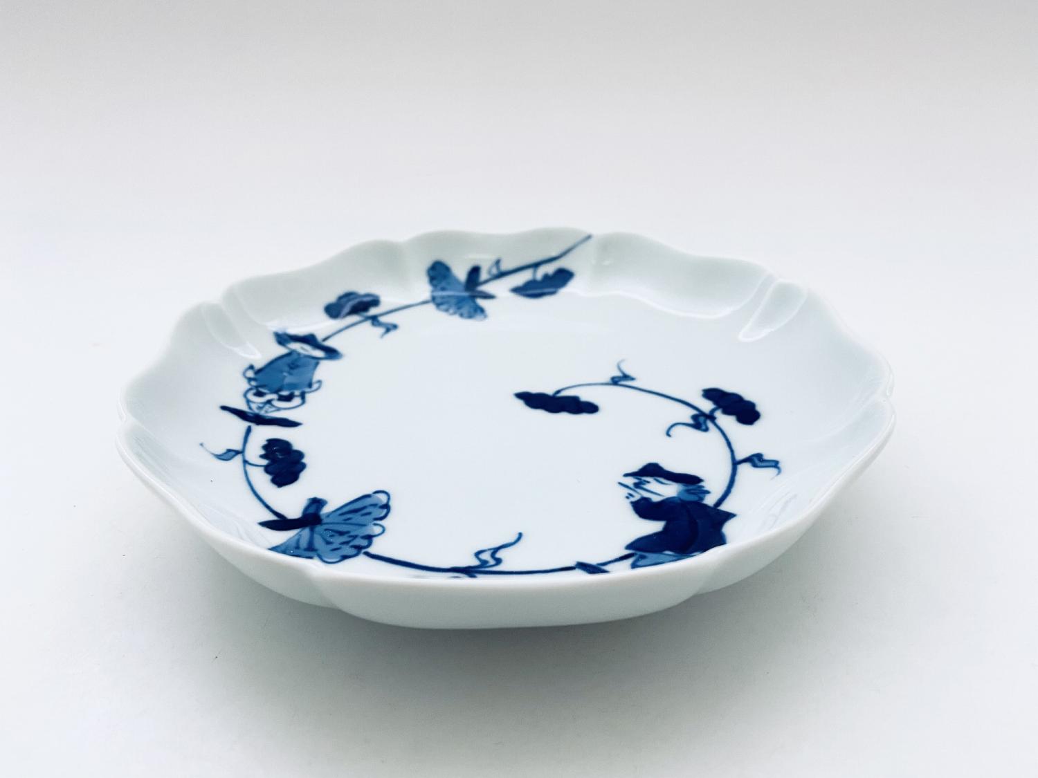 クラシックシリーズ 牡丹唐草異人八方割5寸皿 青花 有田焼