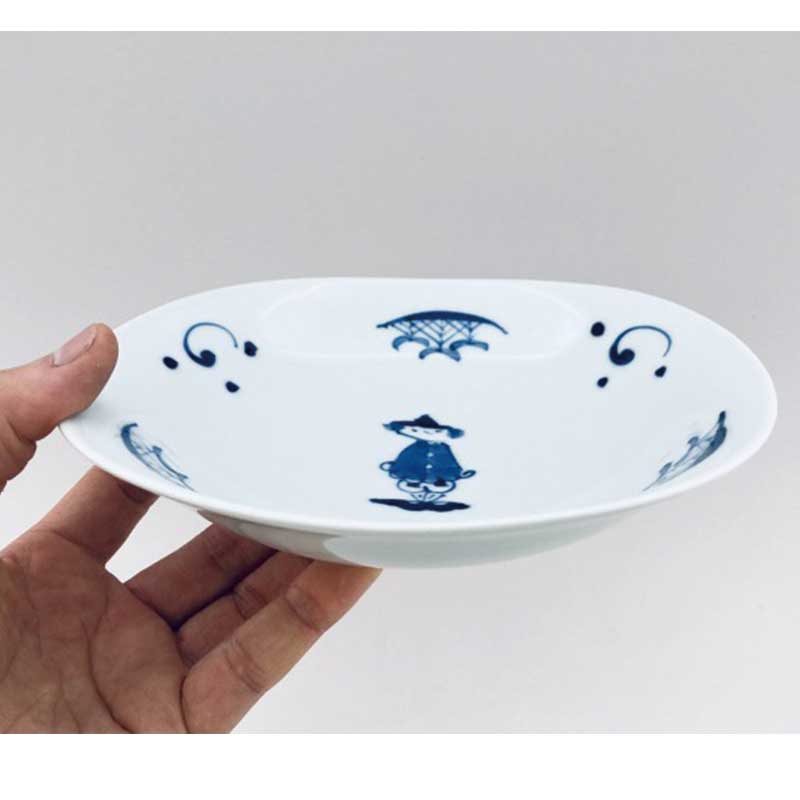 見込みの異人さんが愛らしいですね。楕円型の深めの皿でサラダや汁系の料理にも重宝します。お届は、通常1週間前後ですが、在庫切れの場合は、手作りの為、少々お時間をいただくことがございます。その場合は、メールかお電話にてご連絡いたしますので、よろしくお願いいたします。