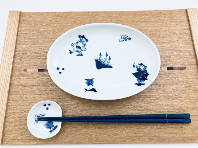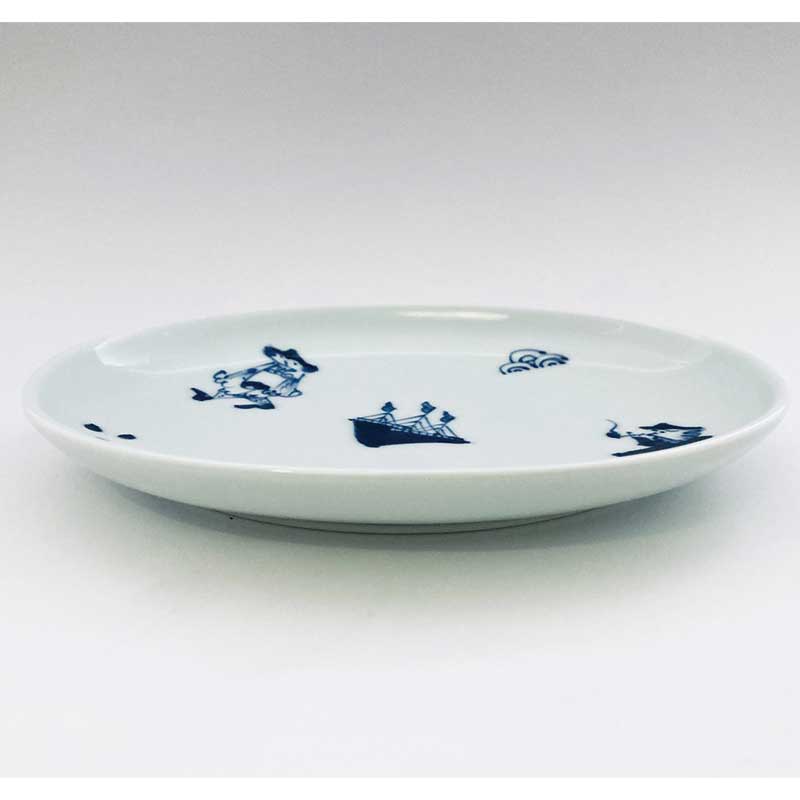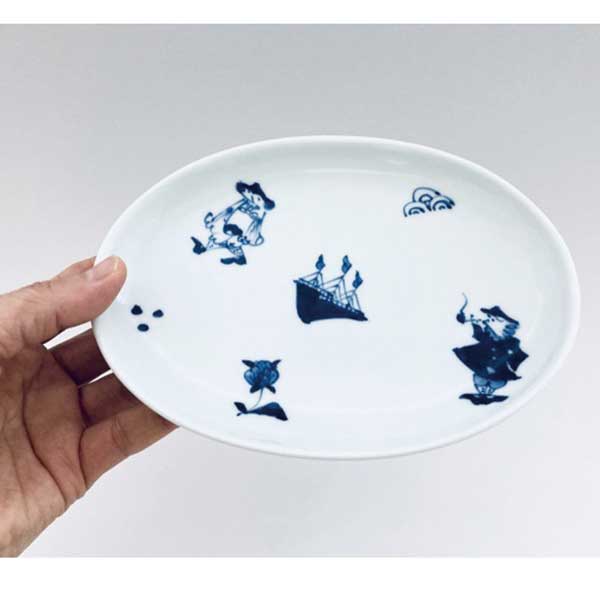 異人づくし小判銘々皿 青花 有田焼