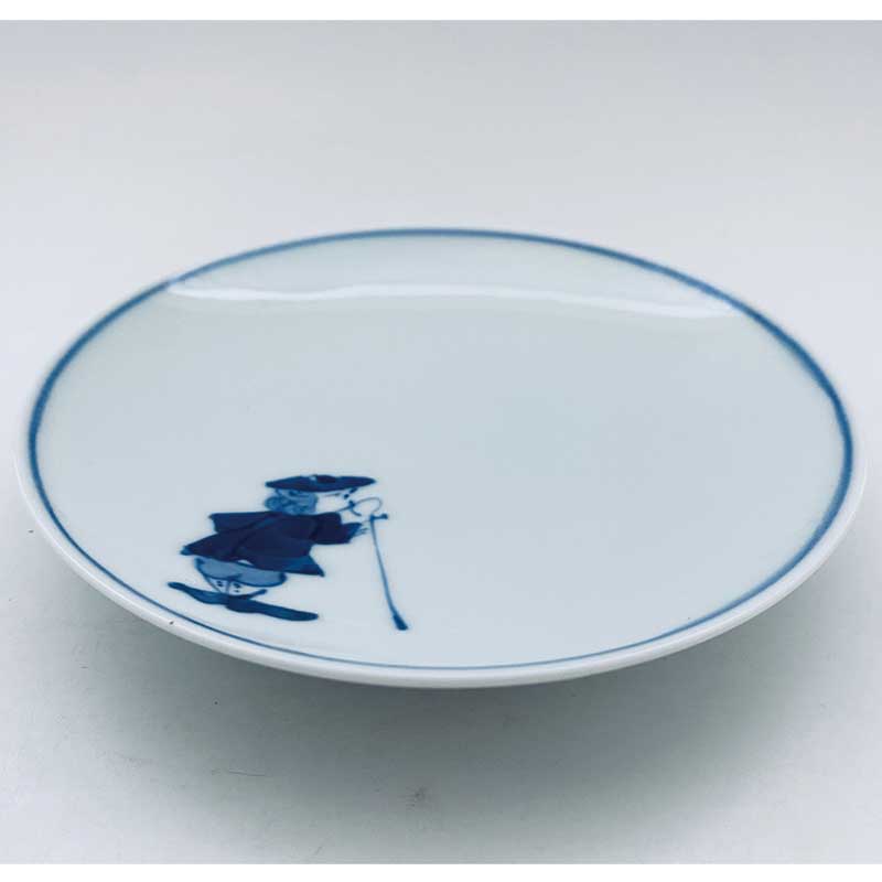 青花ご愛用者様が、まずは揃えておきたい人気の丸銘々皿に、ステッキ異人の絵柄をあわせてみました。