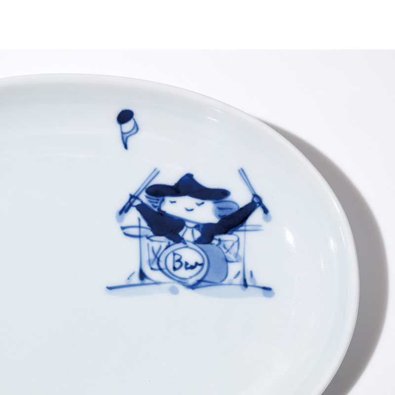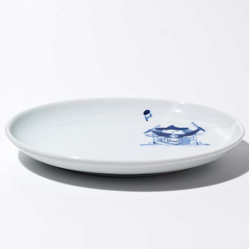 南蛮人音小判銘々皿 ドラム 青花 有田焼