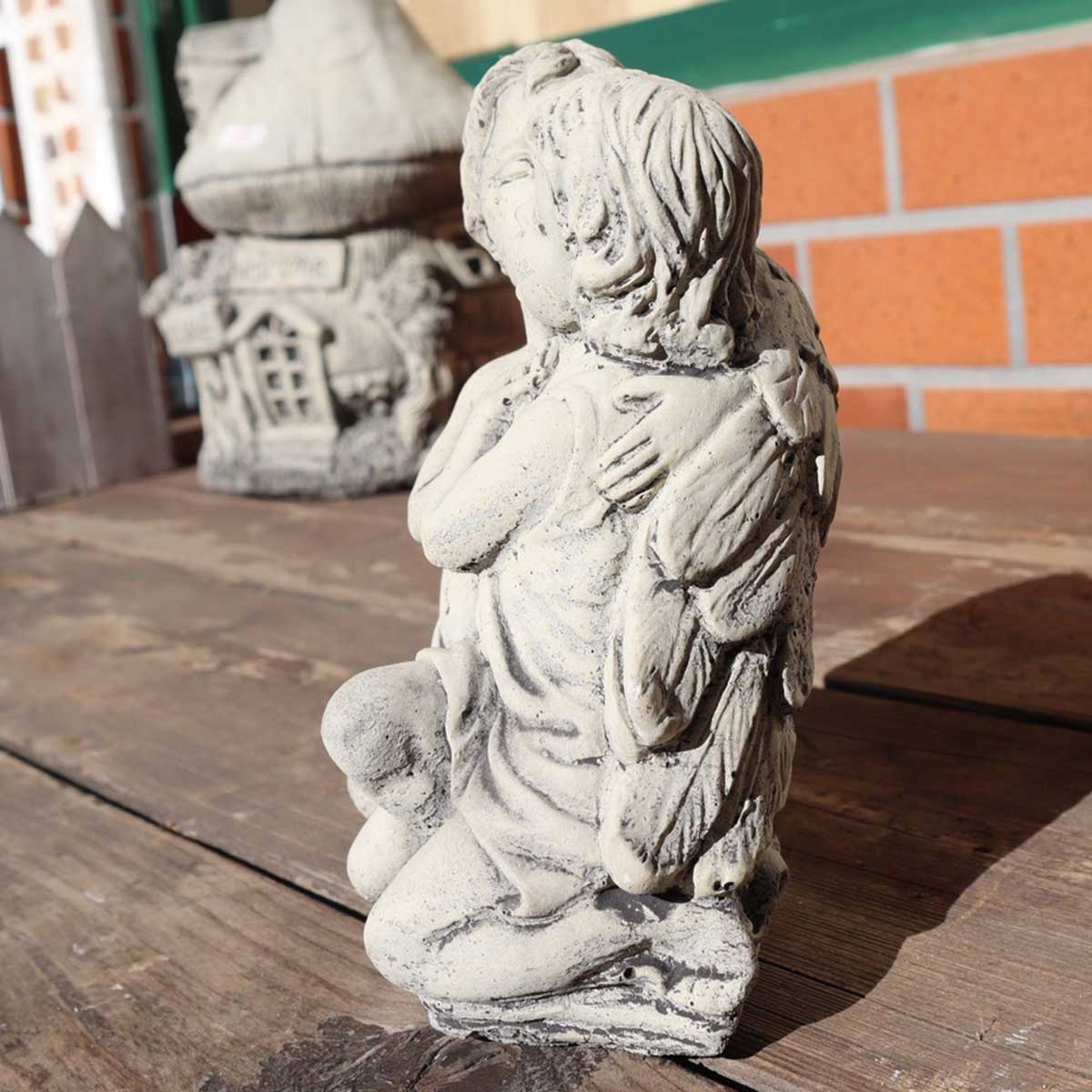 イギリスからやって来た手造りガーデンストーンのキスする天使。