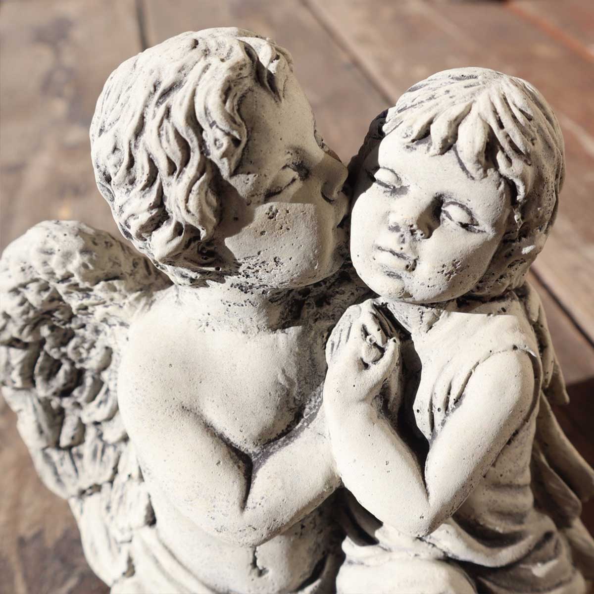 イギリスからやって来た手造りガーデンストーンのキスする天使 ガーデン装飾