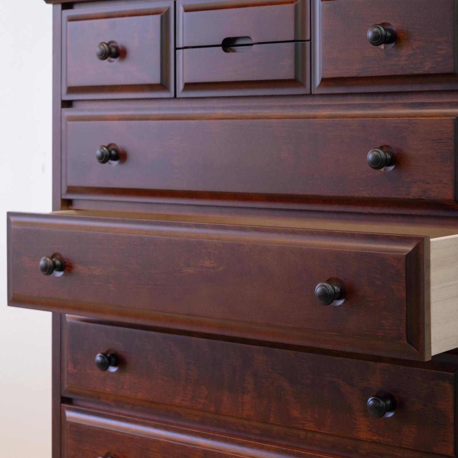伝統的な民芸家具の歴史を受け継いだクラシカルなデザインが魅力的な85cm幅ハイチェスト。材質は、高級カバ材を使い、味わい深い民芸家具の趣を感じます。