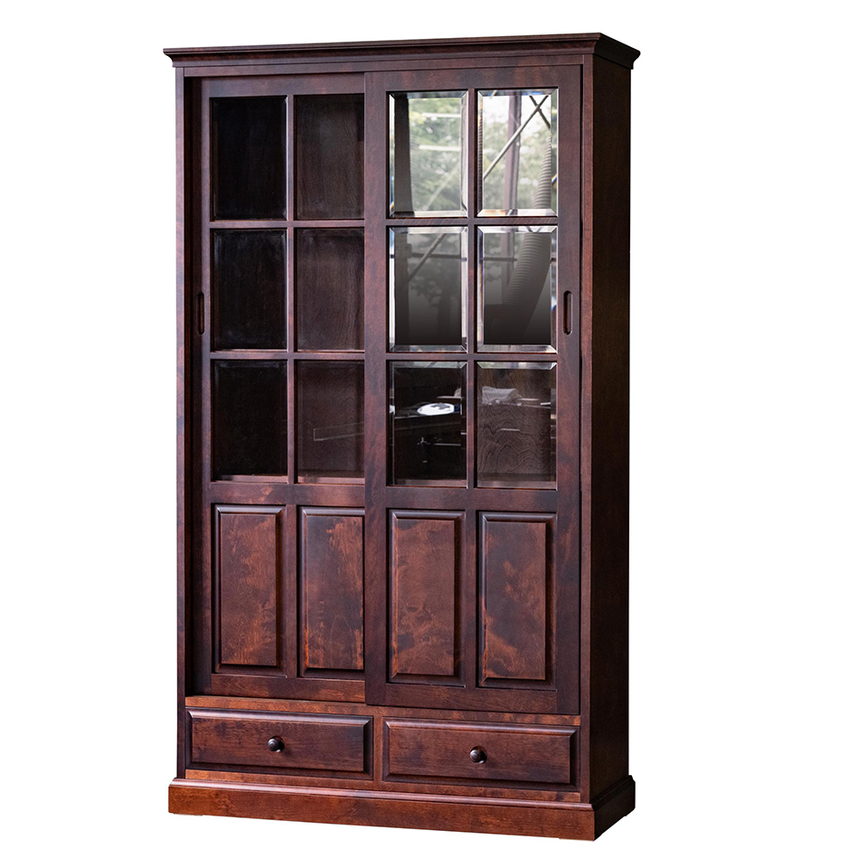 伝統的な民芸家具の歴史を受け継いだクラシカルなデザインが魅力的な105cm幅書棚(引き違い戸)。