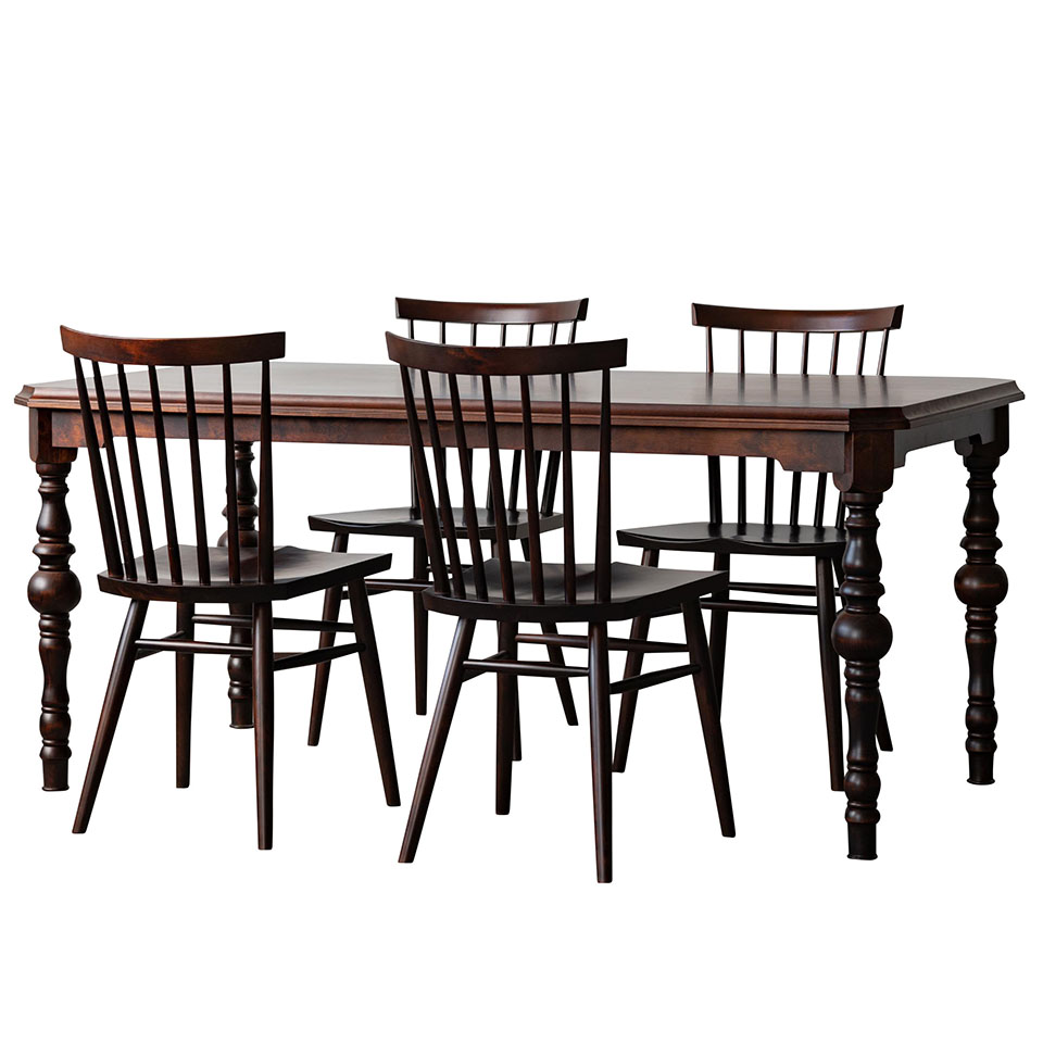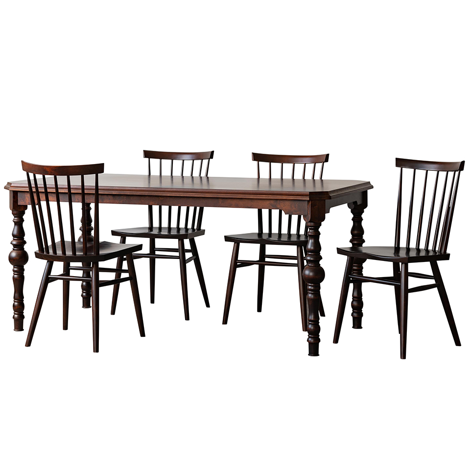 伝統的な民芸家具の歴史を受け継いだクラシカルなデザインが魅力的なダイニング5点セット。