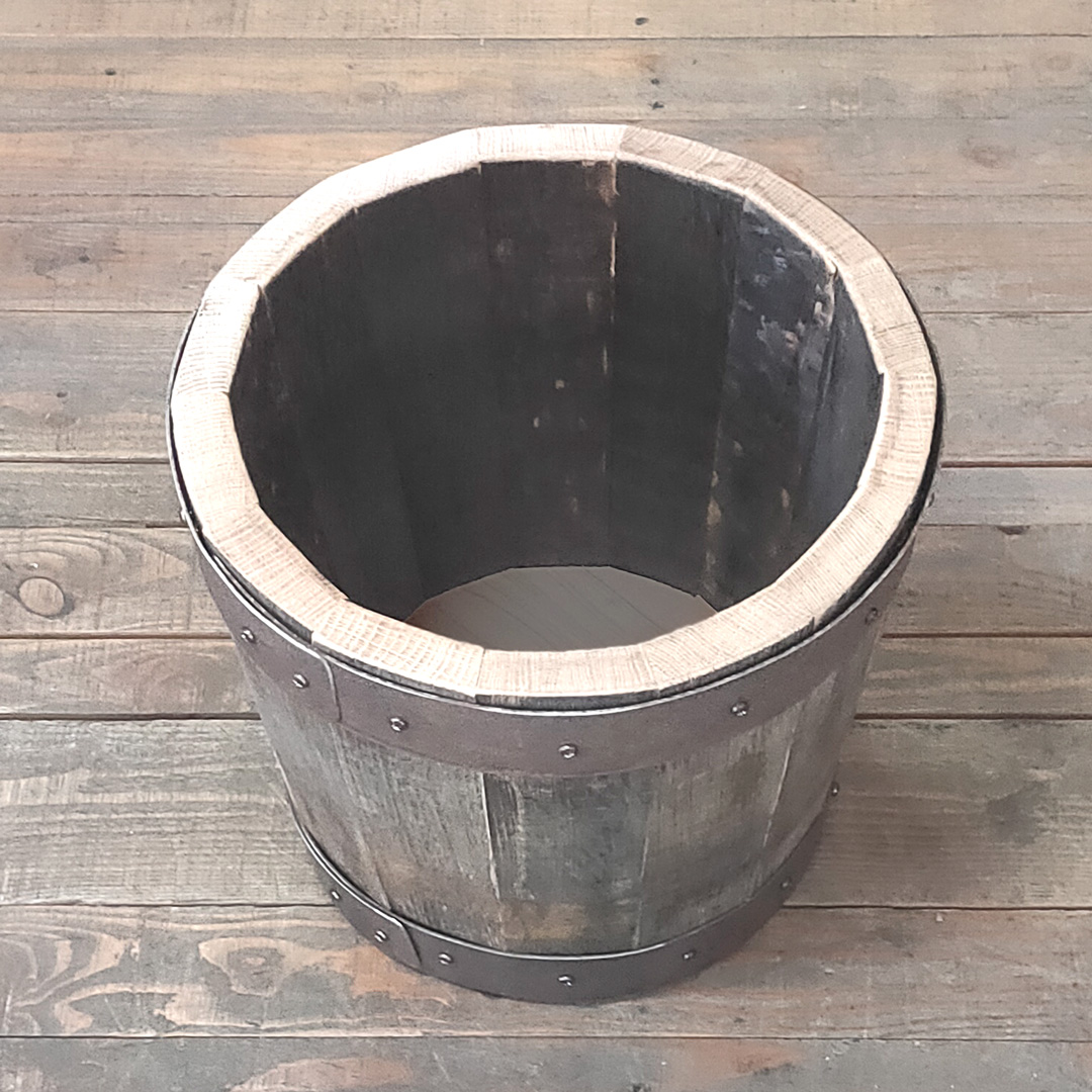 樽好きにはたまらない風合いをそのままのに残し、磨き上げサイズに合わせ熟練の職人が作り上げたウイスキー樽材使用のスモールバケットです。