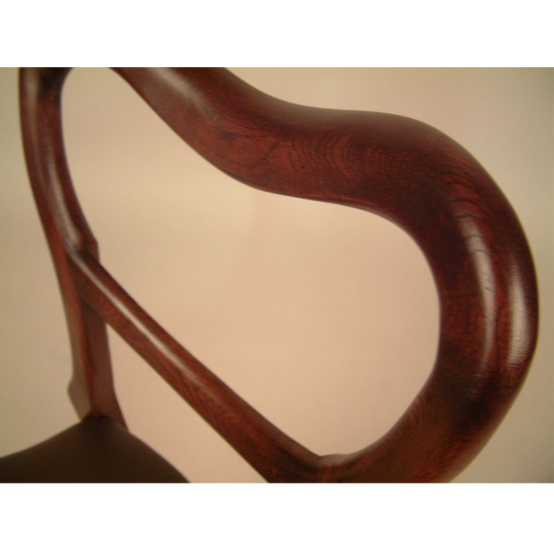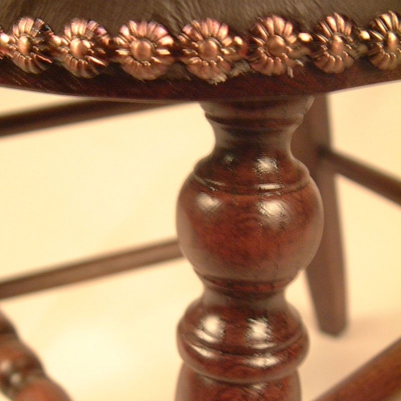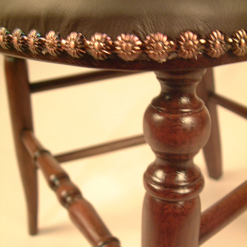アンティーク調家具によくあるバルーンチェアを再現しました。張地も人気であつかいやすい合皮のモスグリーン色を張りました。