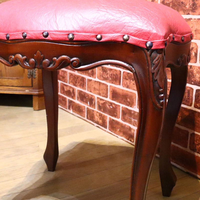 シャルルロワシリーズのおしゃれな猫脚スツールPVCレッド色。ファブリックは、ゴブラン模様で素敵です。彫刻も熟練の職人が丁寧に作っています。ガブリオールレッグの流れるような曲線が、高級感を醸し出します。※輸入品のため国内に在庫の無い場合は、納期がかかる場合がございます。予めご了承ください。納期がかかる場合は、メールもしくは、お電話にてご連絡いたします。