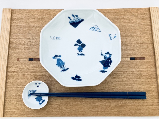 絵柄は人気の異人づくし。使い勝手の良い深みあるお皿です。