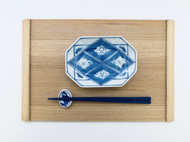 使いやすい取り皿に、格子と花の文様をあしらってみました。