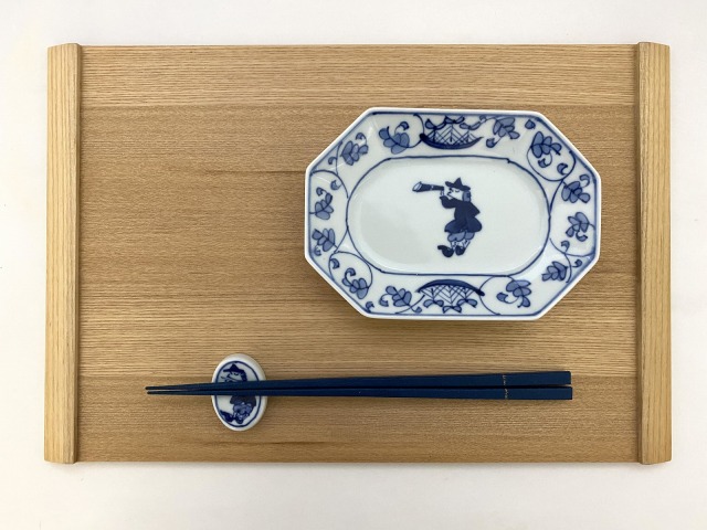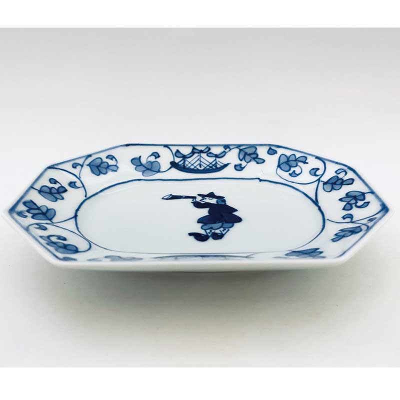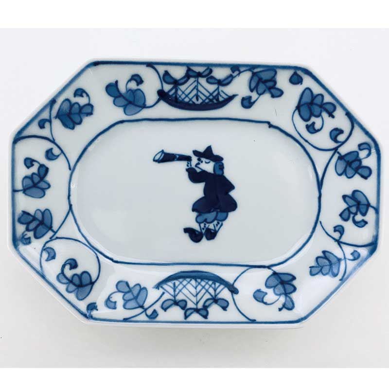 取り皿として扱いやすい八角長角皿に、周囲を唐草であしらった異人さんを描いてみました。