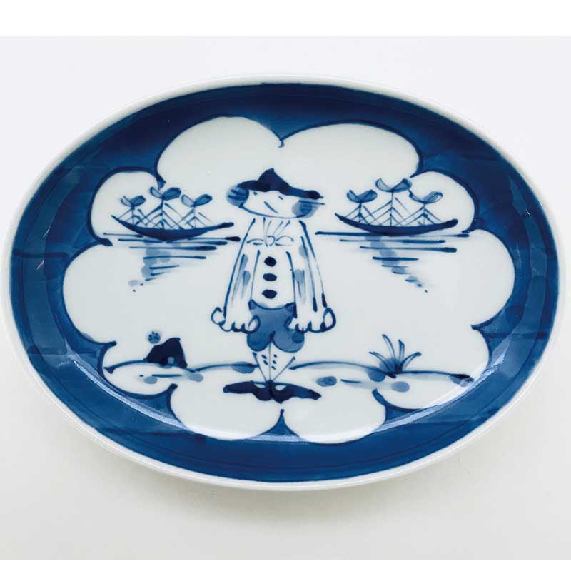 丈夫で扱いやすい楕円形のお皿に、雲間から覗く、愛らしい異人さんを配してみました。