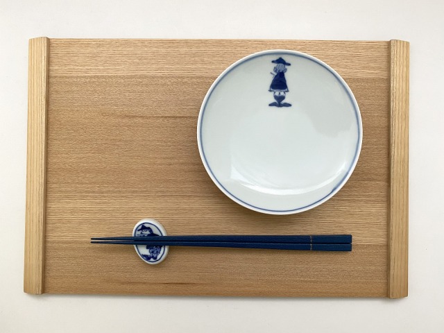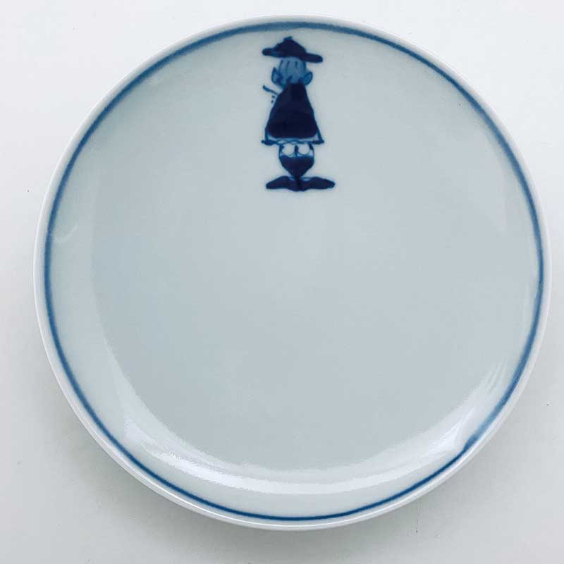 取皿として扱いやすい丸銘々皿に、愛らしい後姿の異人さんを描いてみました。