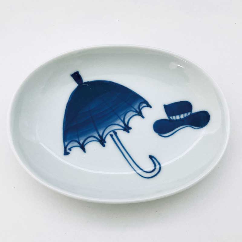 異国情緒を感じさせるパラソルとハットの絵柄。