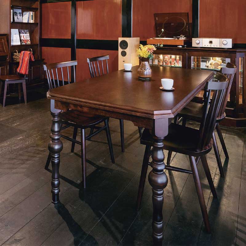 伝統的な民芸家具の歴史を受け継いだクラシカルなデザインが魅力的なロクロ脚の165cm幅ダイニングテーブル。