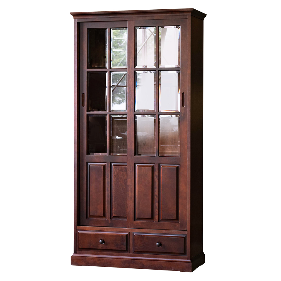 伝統的な民芸家具の歴史を受け継いだクラシカルなデザインが魅力的な90cm幅書棚(引き違い戸)。