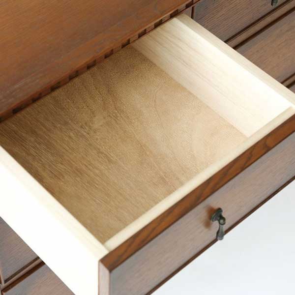 昔ながらの、アンティーク家具に使われるラッカー塗装により、ワイピンングと塗装を繰り返すことで、より色の深みを出しています。