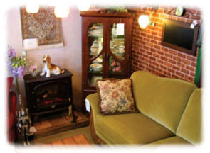1F 薪ストーブとカナダソファー